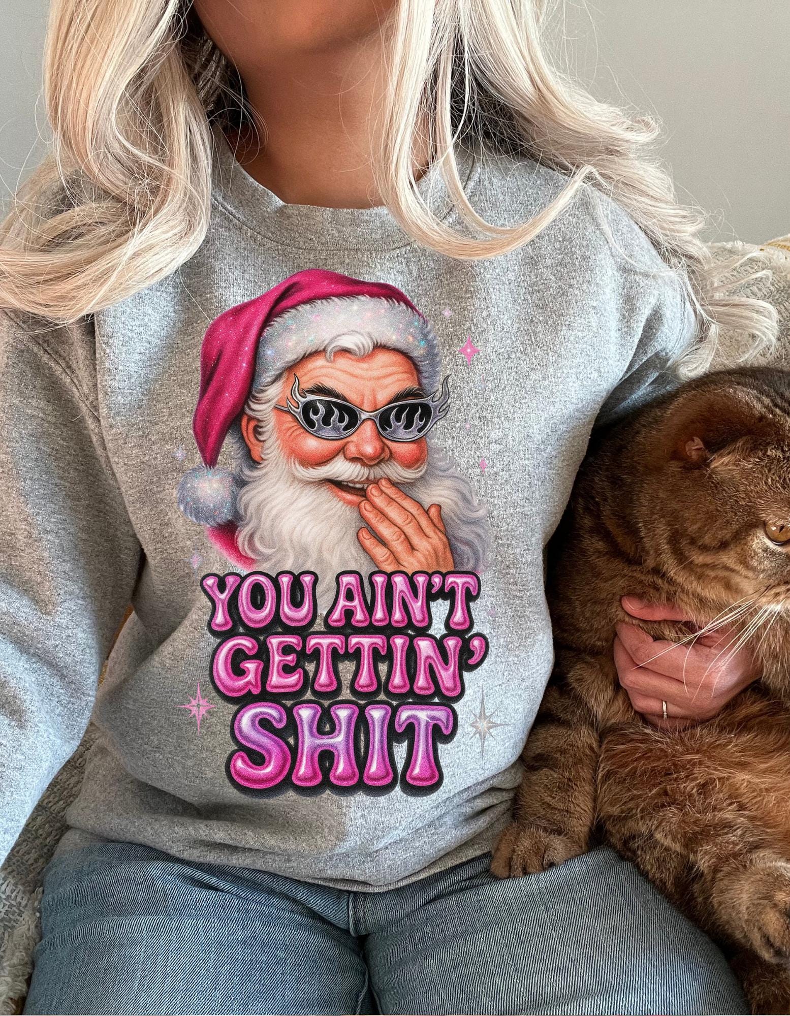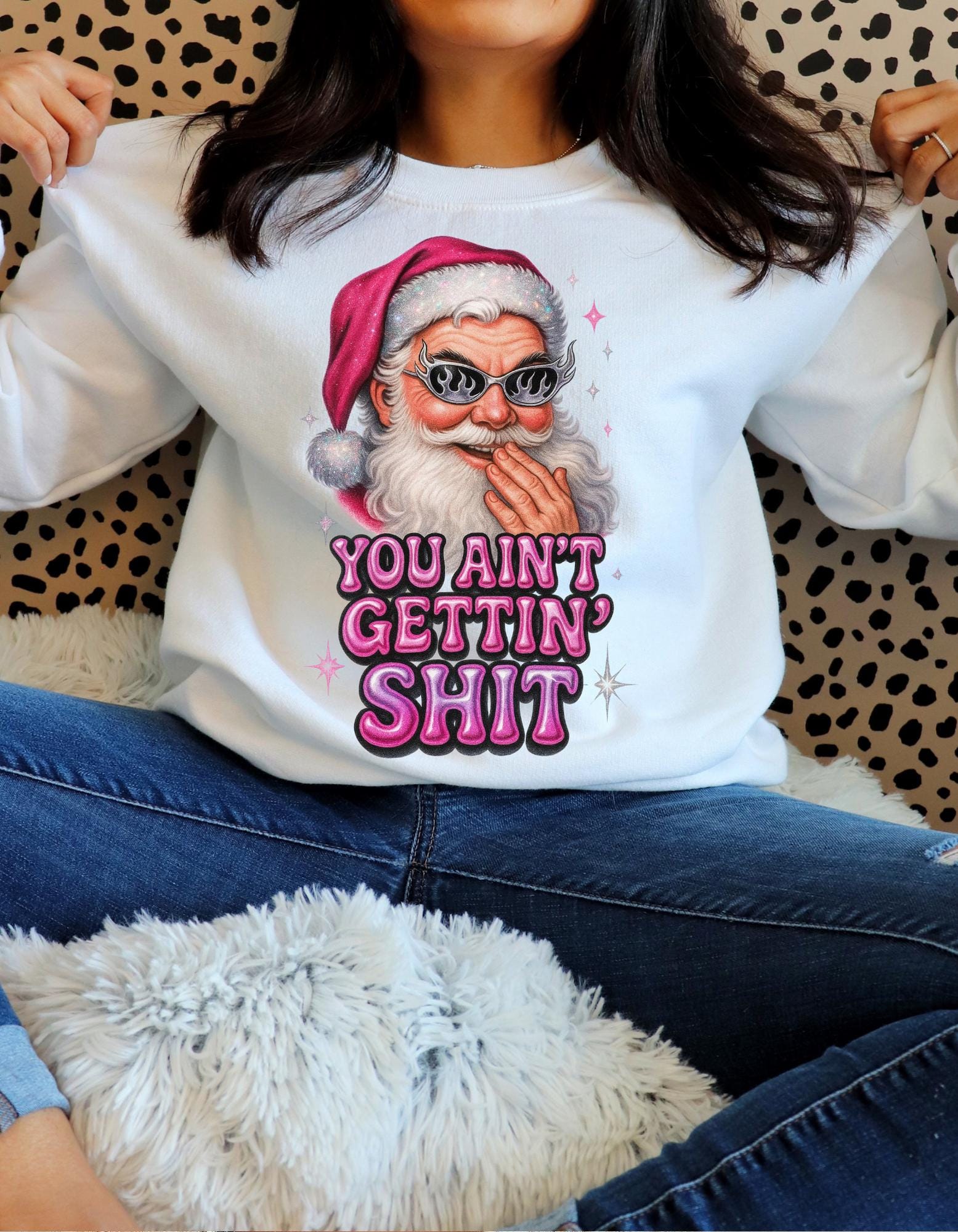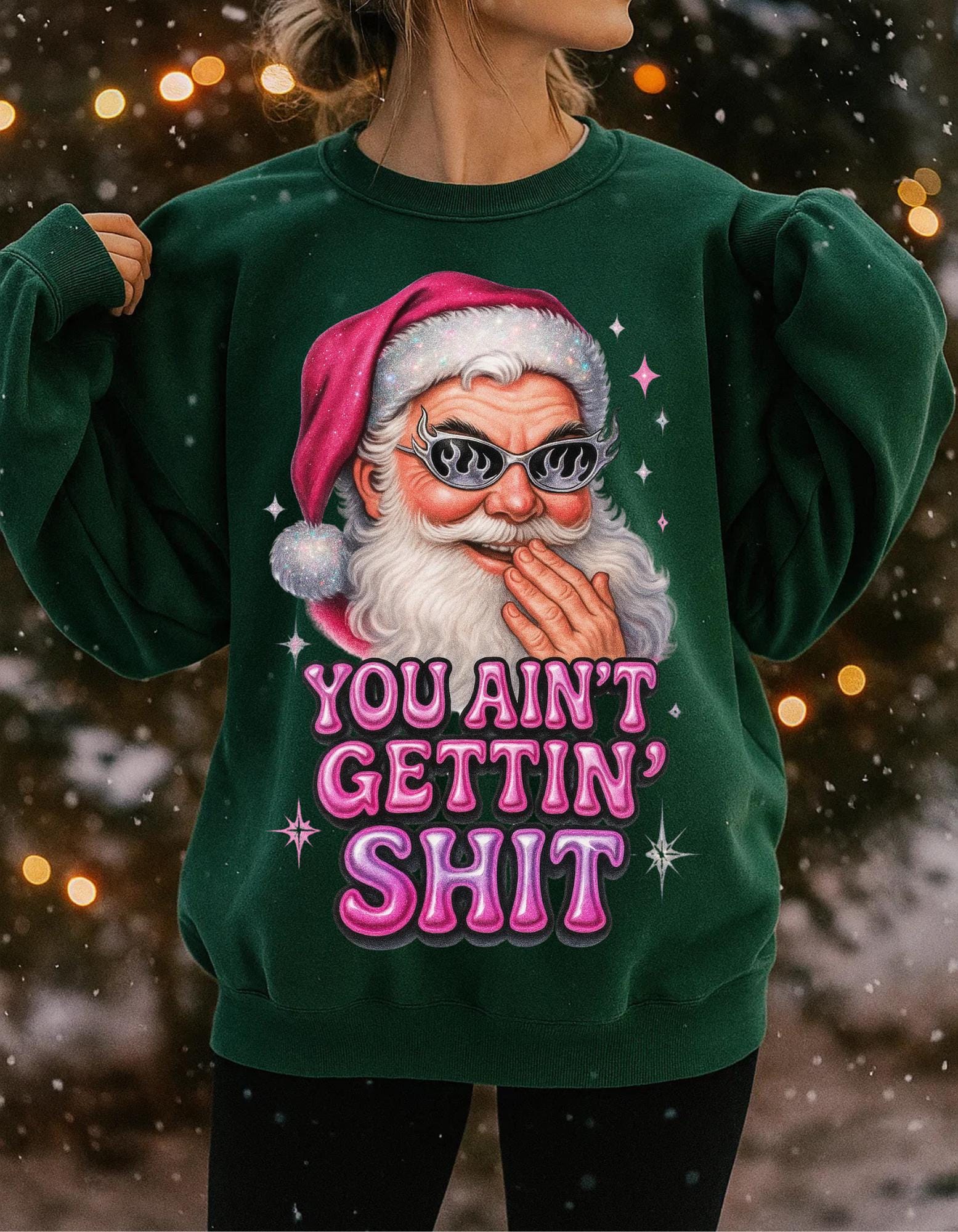 Funny Santa Sweatshirt, Christmas Humor Crewneck, Unisex Holiday Pullover, Sarcastic Santa Graphic, Metallic Festive Gift Sweater