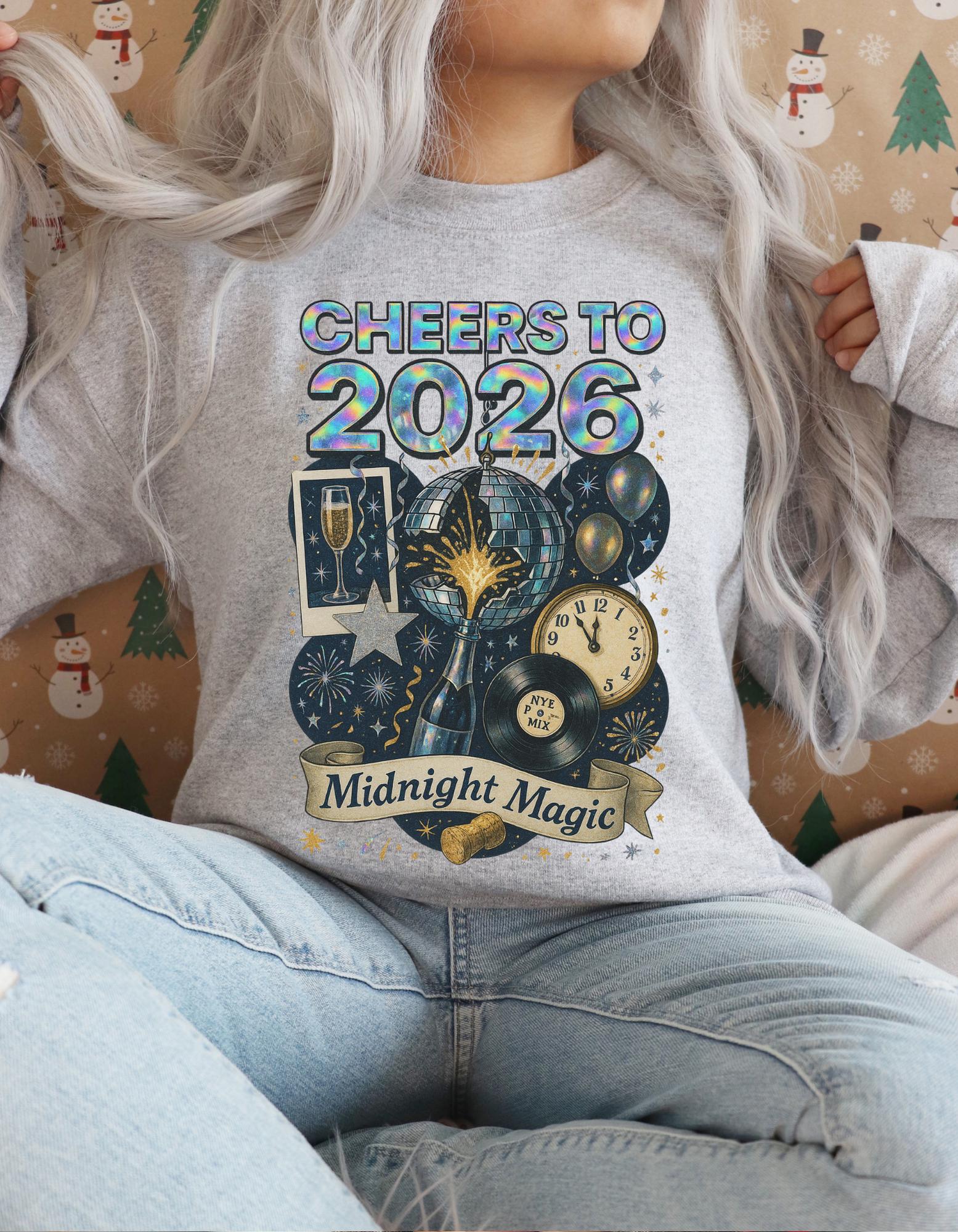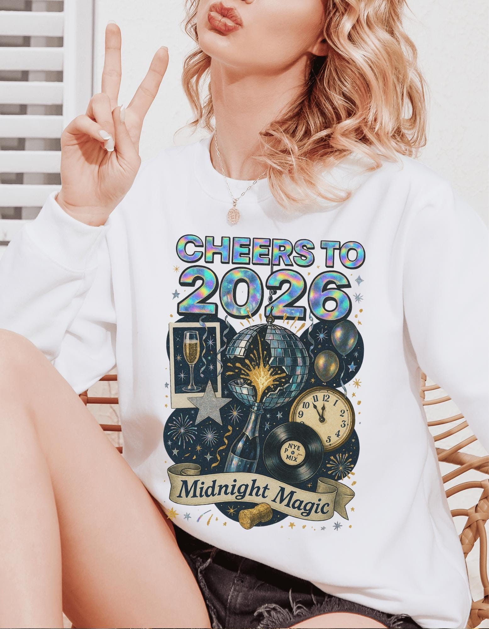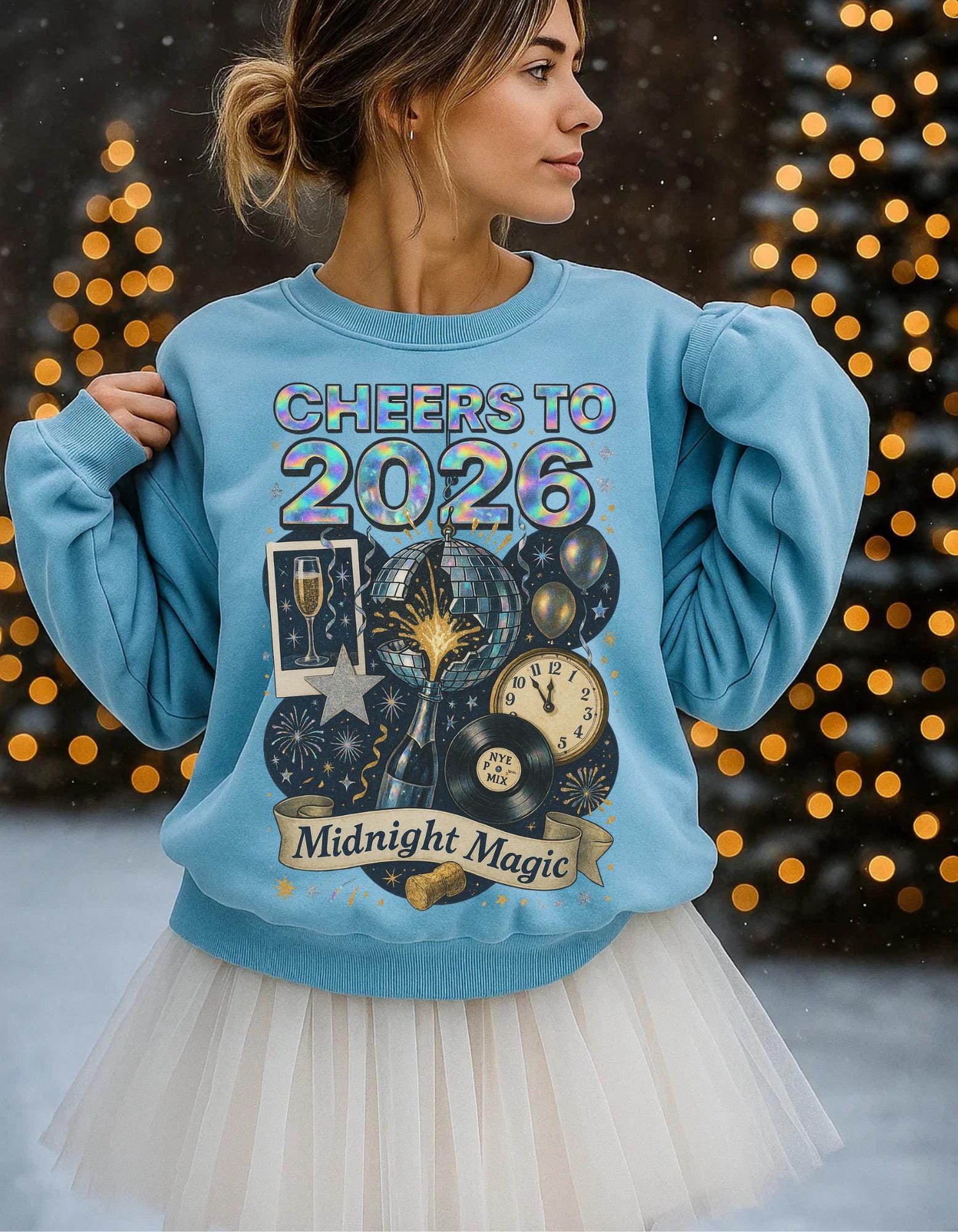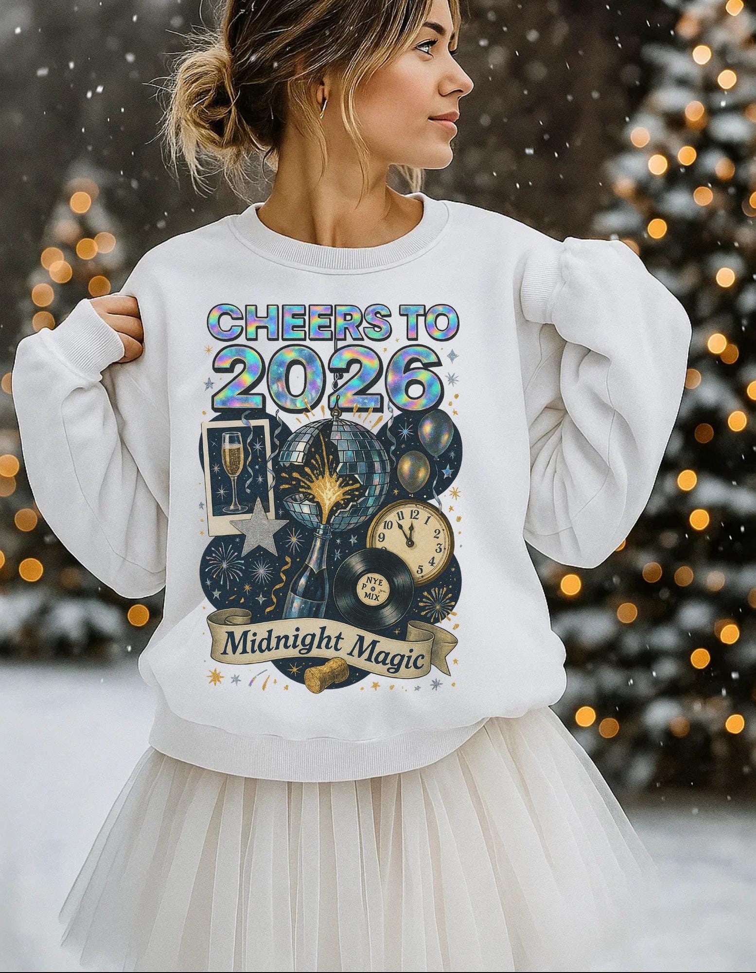 Celebrate 2026 in style with our Midnight Magic Crewneck Sweatshirt — a must-have cozy pullover that’s equal parts festive and effortless. Made for unisex wear, this sweatshirt features a bold graphic that channels the magic of midnight celebrations and new beginnings.