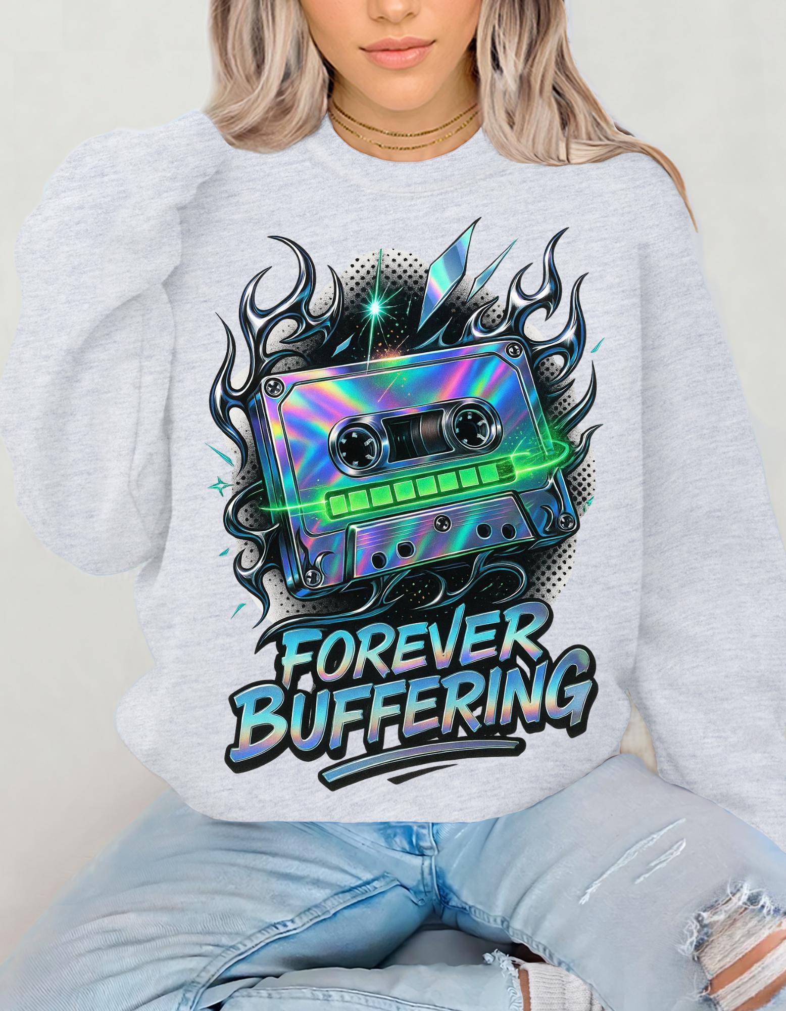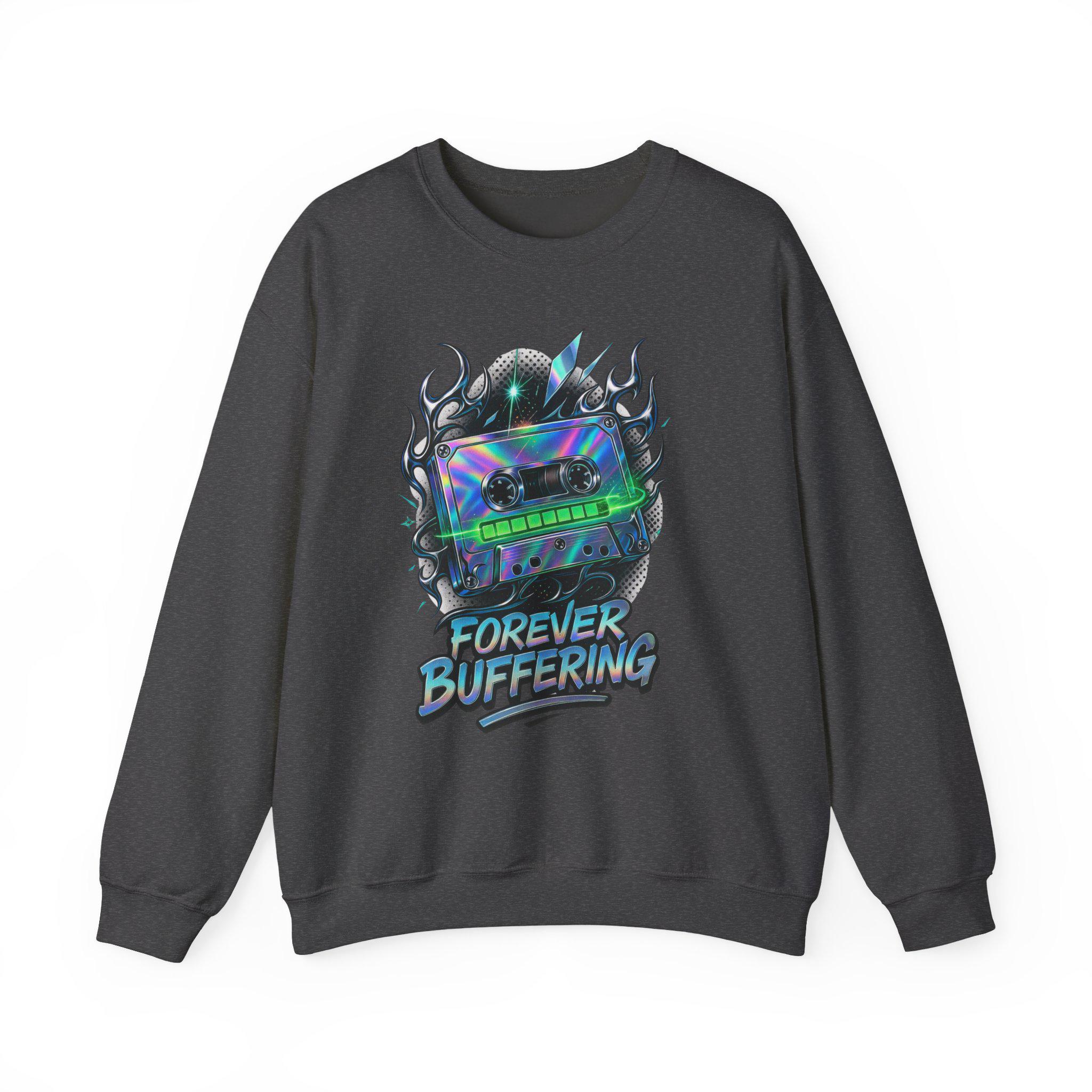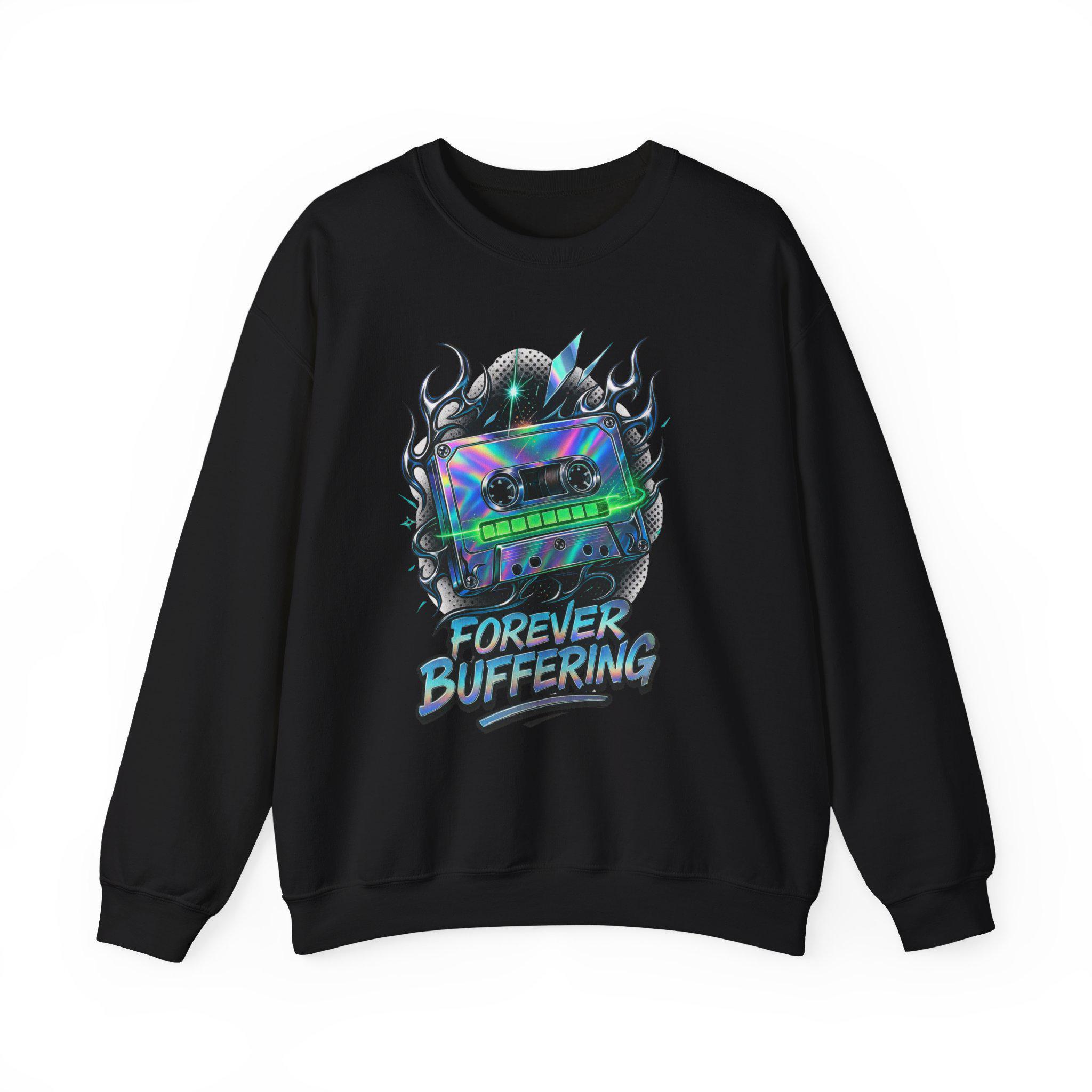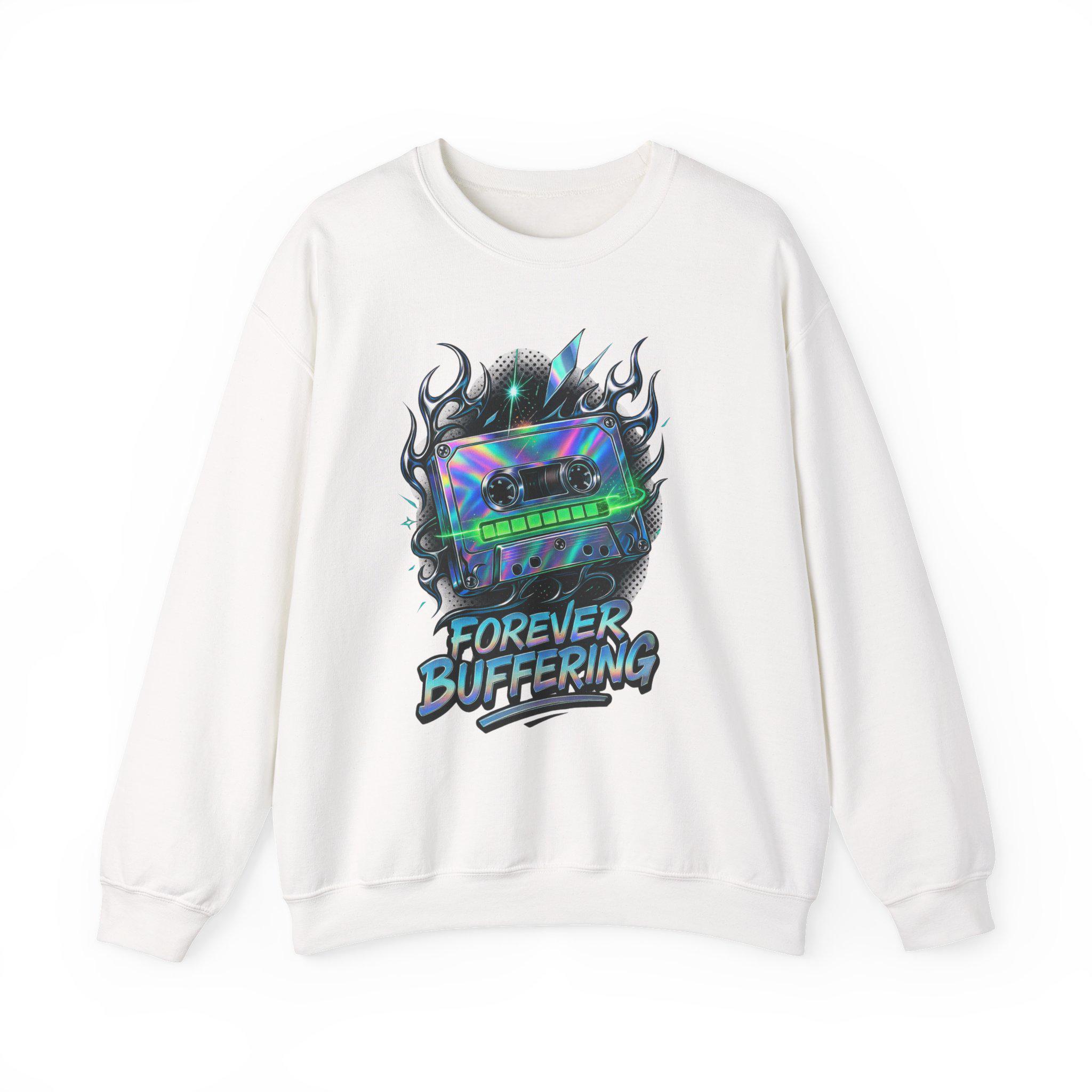 A nostalgic Sweatshirt featuring a design of MixedTape, forever buffering, y2k chrome. Perfect for those who love the Y2K aesthetic and want to relive the past. Ideal for adults looking for a comfortable and durable sweatshirt for everyday wear. Great for nostalgic holidays like Throwback Thursday or any casual occasion where you want to showcase your love for the early 2000s.