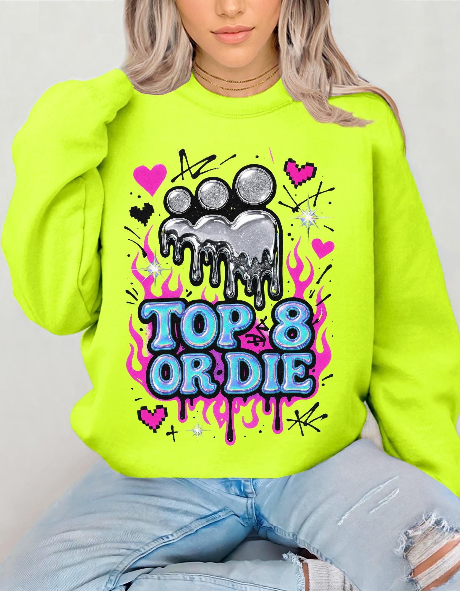 We print using Direct-to-Film (DTF) technology, which lets us use any material and a full spectrum of colors—unlike sublimation, which has more limits. Follow the care instructions above, and your design should stay bright and durable for 3+ years!