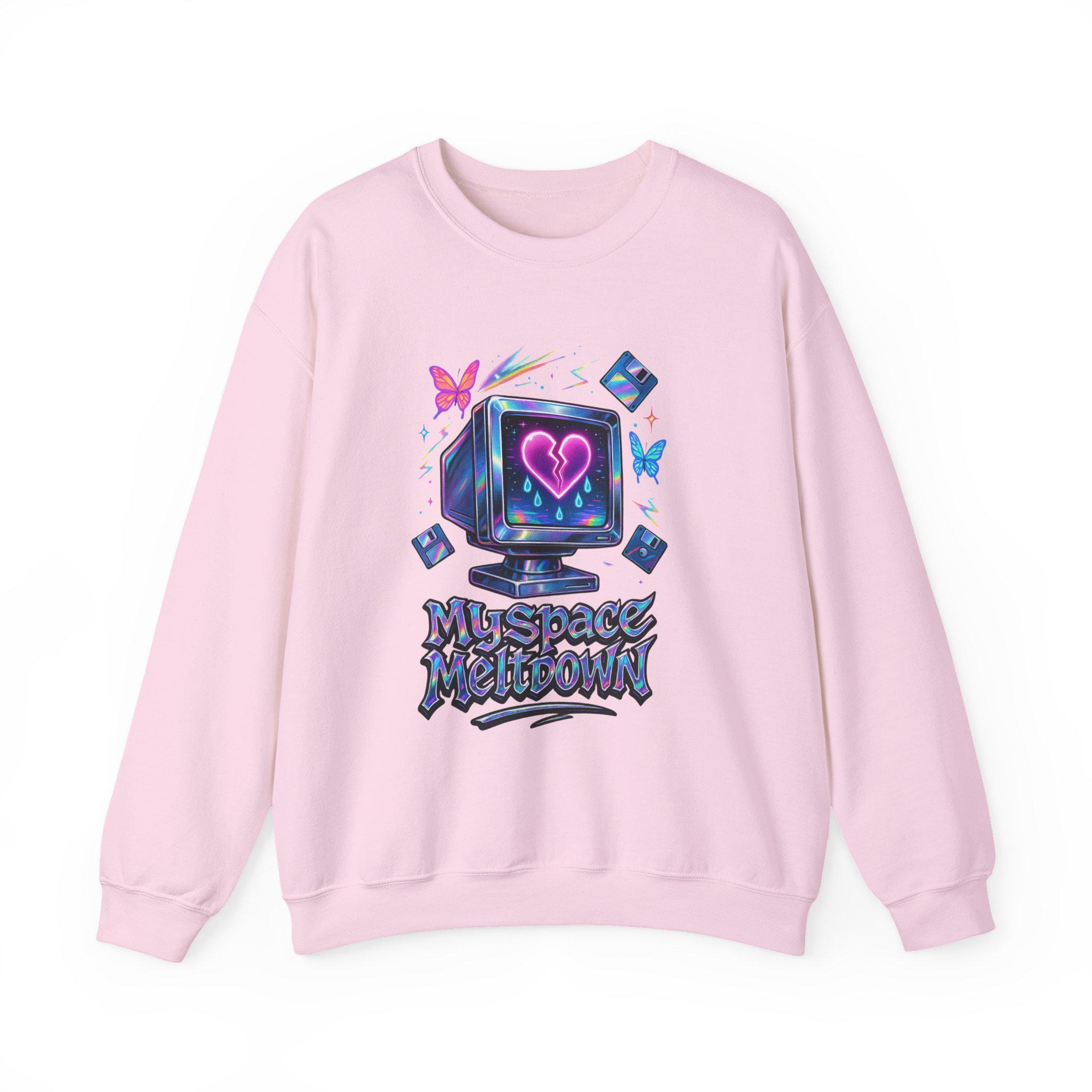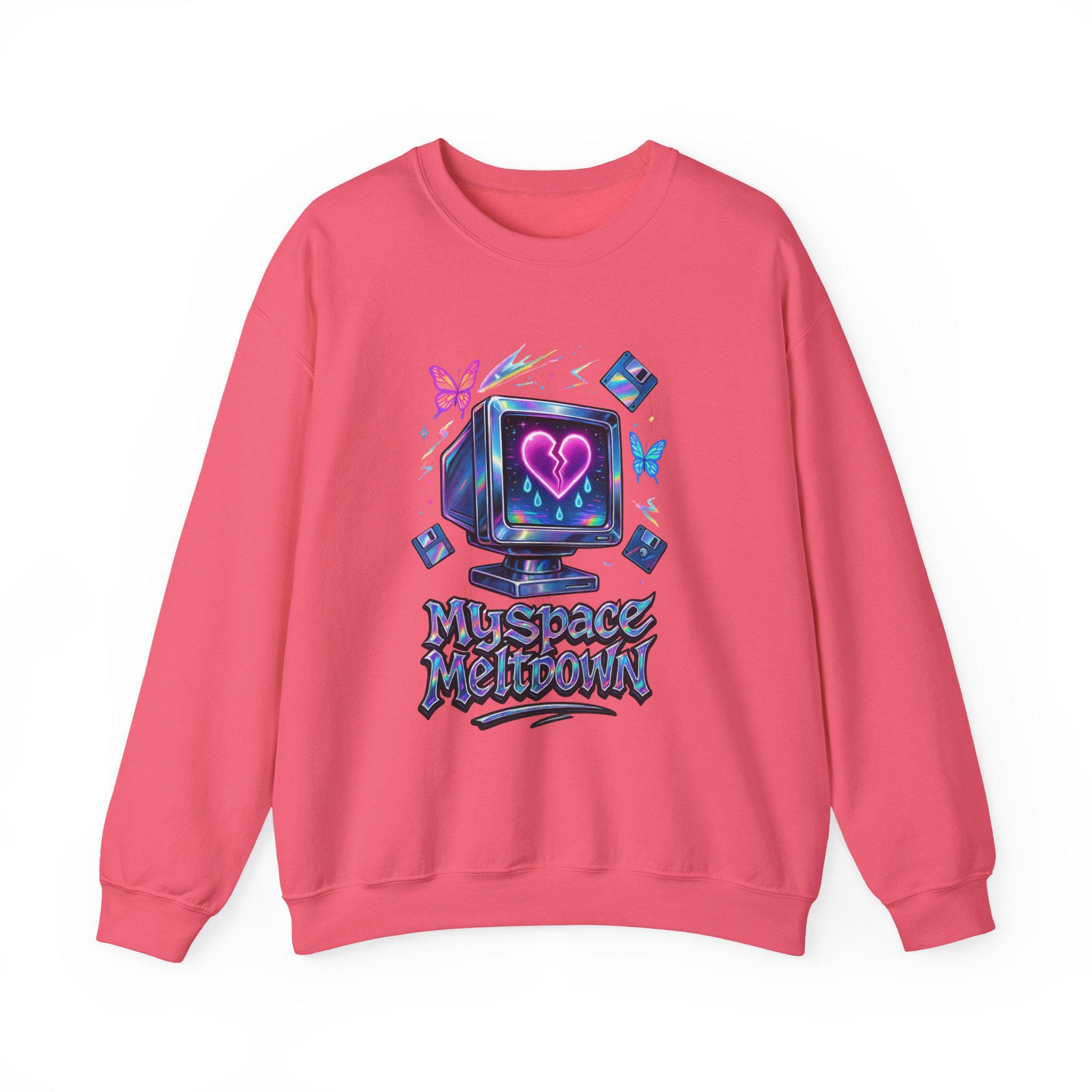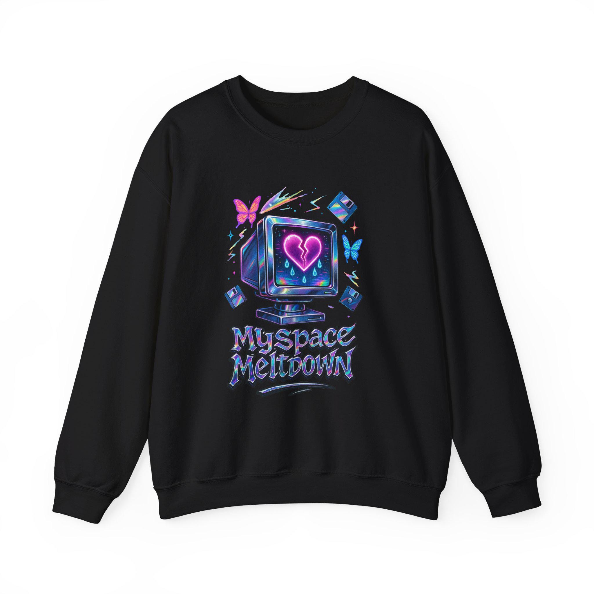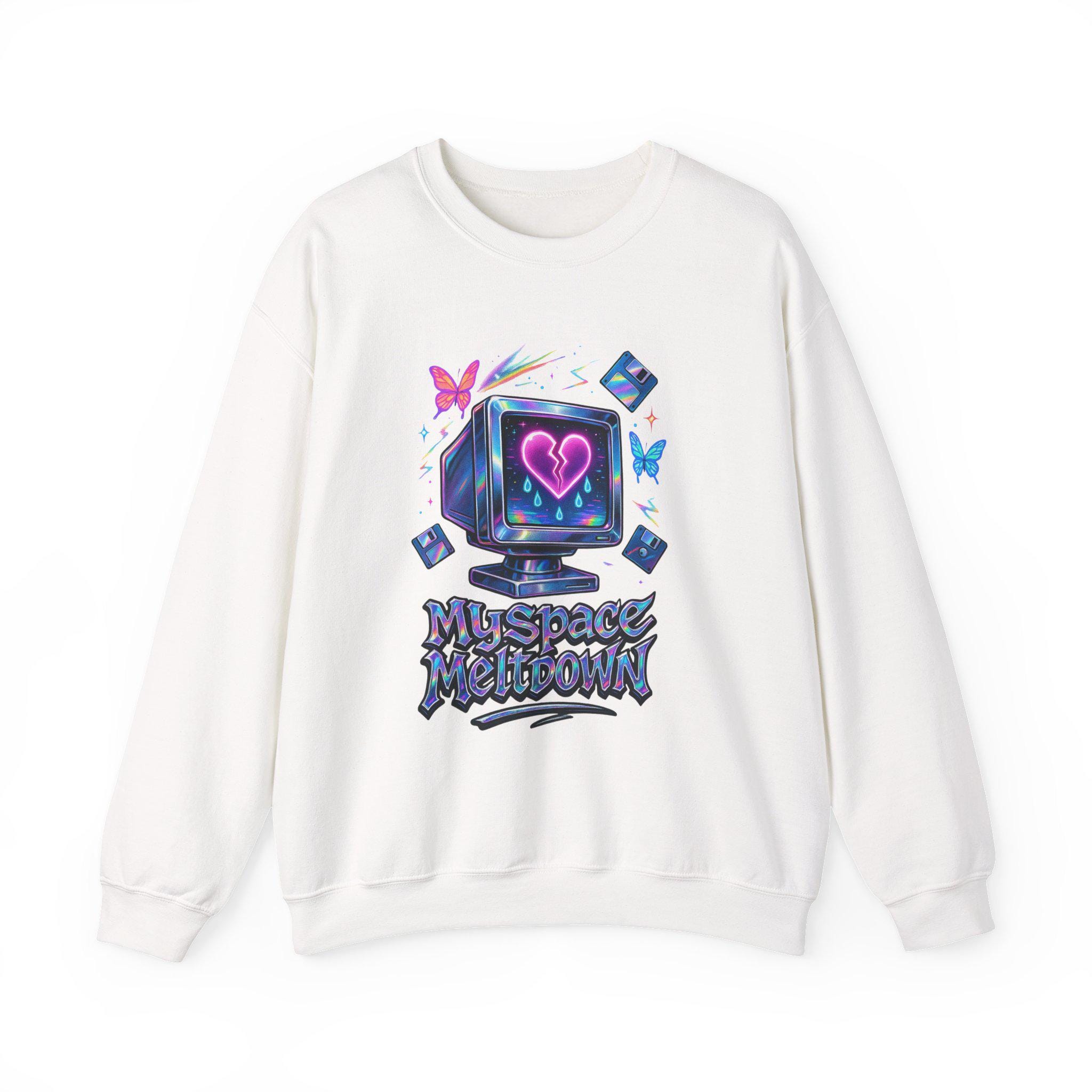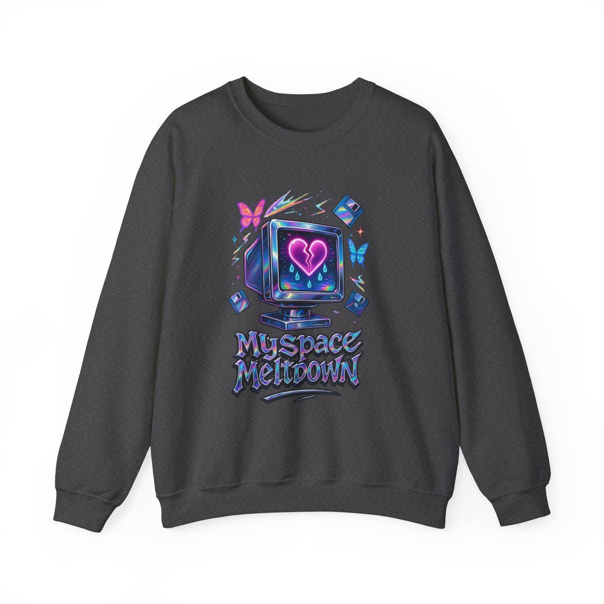 A nostalgic 'Myspace meltdown,'90s computer design on a comfortable and durable heavy blend crewneck sweatshirt. Perfect for adults who love retro tech vibes and want to stay cozy during the colder seasons. Ideal for casual wear or as a unique gift for tech enthusiasts. Relevant for occasions like birthdays, holidays, or everyday wear.