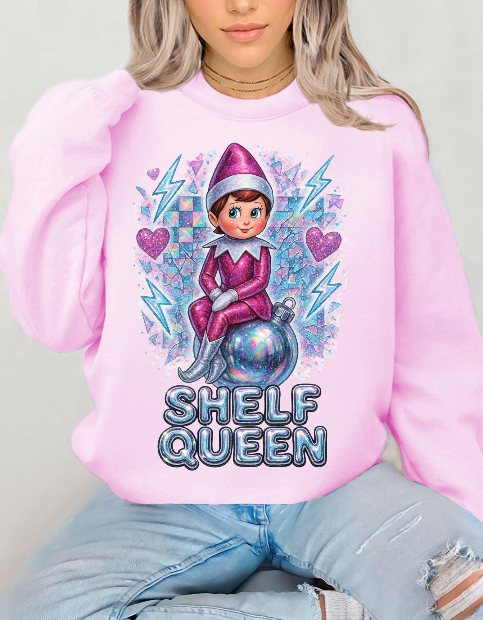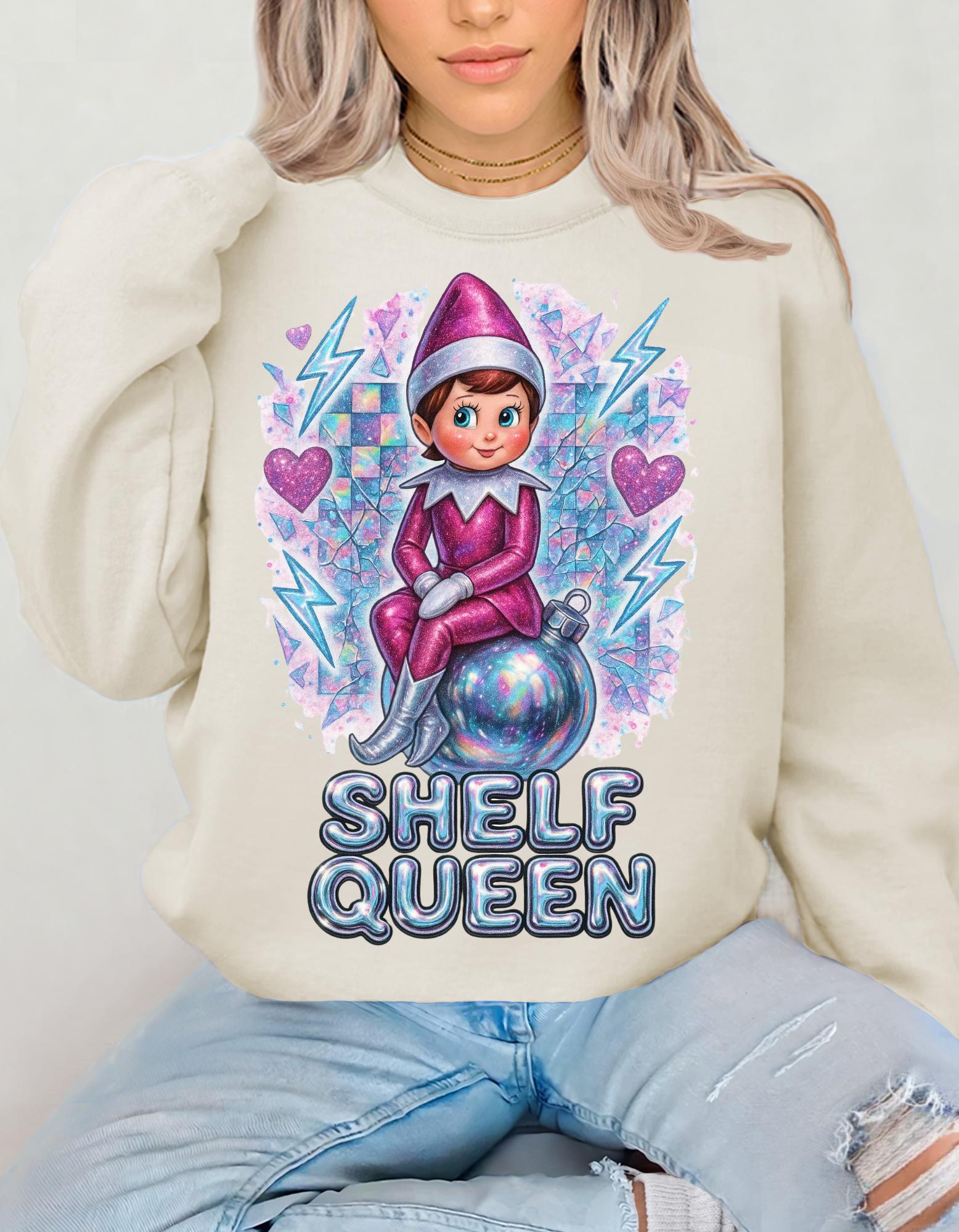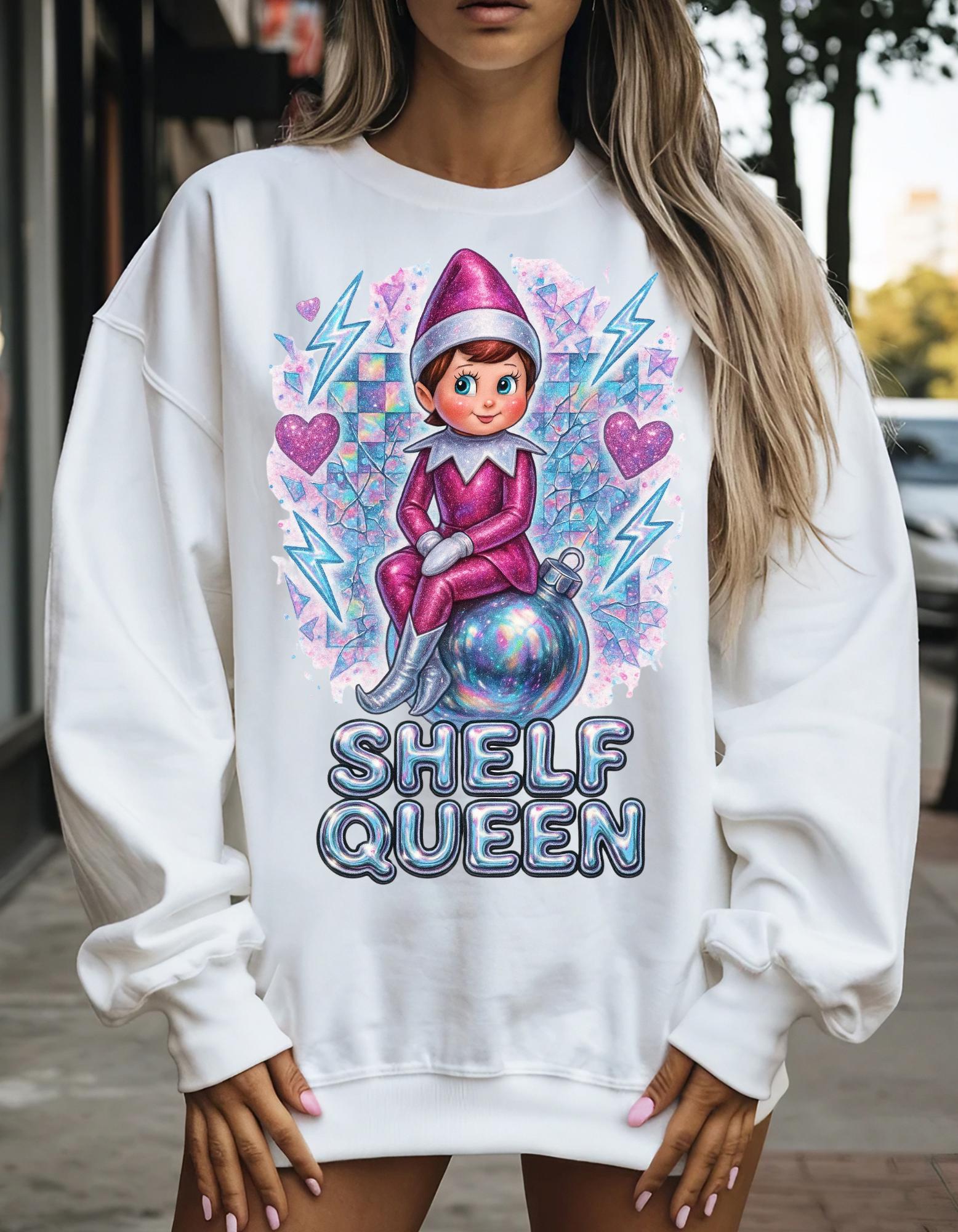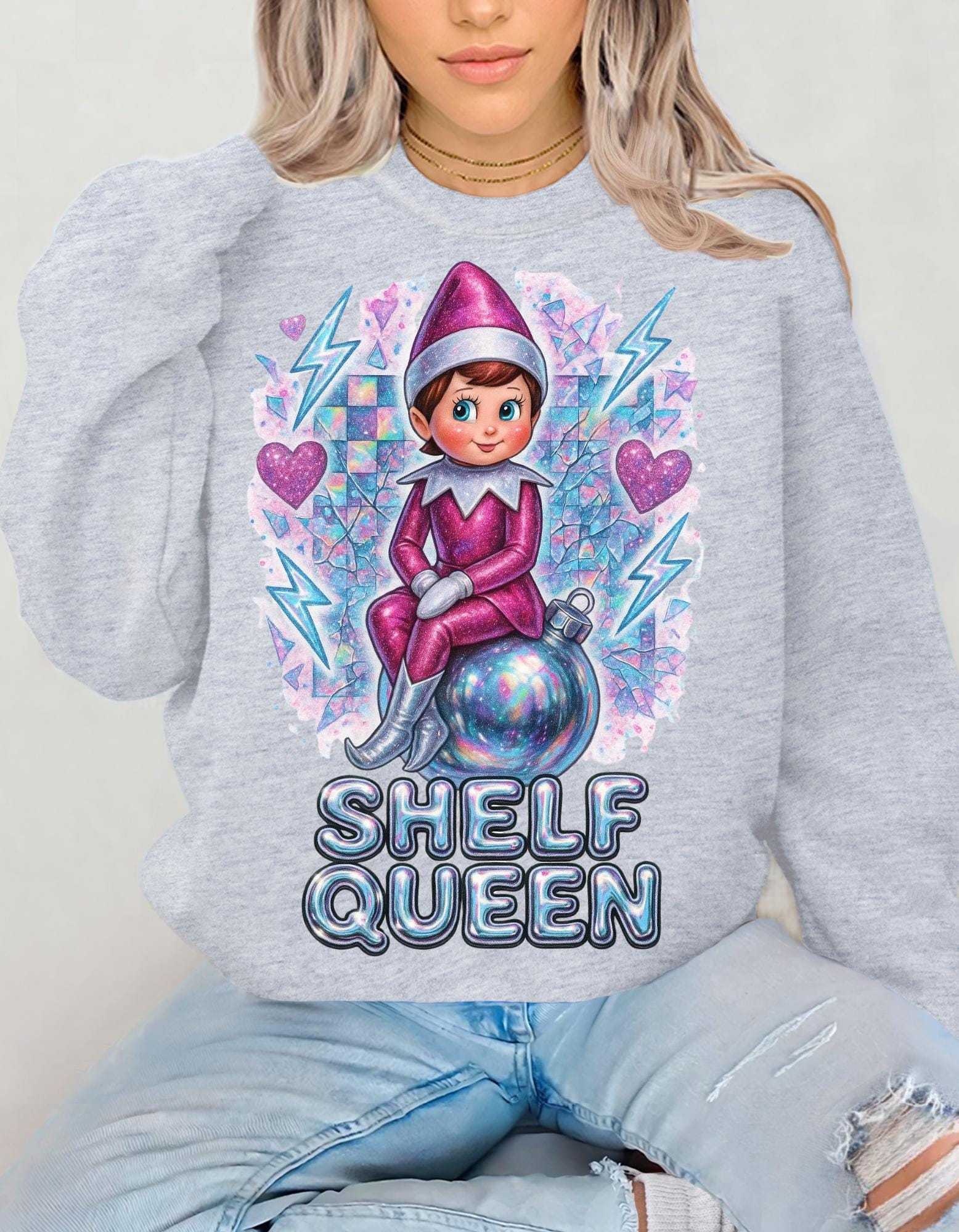 Embrace your playful side with this cozy crewneck sweatshirt, perfect for those who love a touch of whimsy in their wardrobe. Designed for comfort, it features a soft cotton-polyester blend that ensures warmth without compromising on style. The vibrant 'Shelf Queen' design adds a fun flair, making it ideal for casual outings, cozy nights in, or even fun themed parties. This sweatshirt is perfect for adults who appreciate uniqueness in their fashion choices. It's a great gift for birthdays, holidays, or just to treat yourself! Wear it while lounging at home, running errands, or as a standout piece in your casual ensemble.